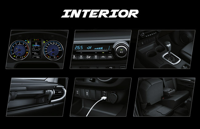 Sitting inside Hilux is now an all new experience. Toyota over the years has tried to improve its pickup comfort and integrate more car-like feel and features within. This time around with 2016 Hilux, it has achieved great success on this front and has made sure that driver's comfort is not compromised even a bit. So, now you can find an ergonomically designed dashboard, 4.2 TFT Type MID gauge, cool box, multiple cup holders, and automatic air-con controls. Connectivity and entertainment are now supported with USB/AUX connect and touch audio cum nav system.