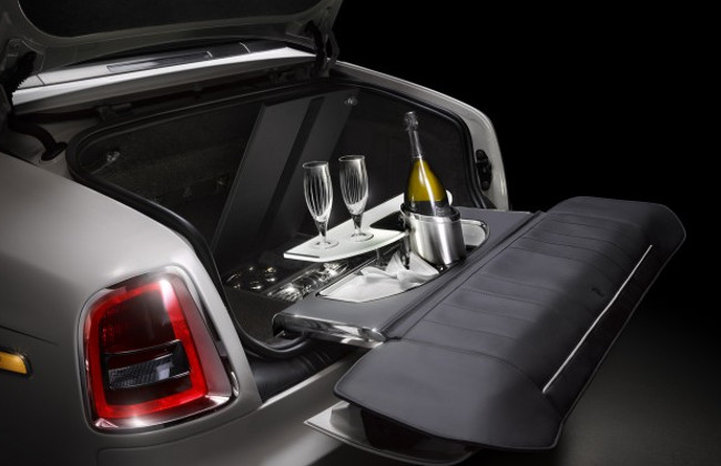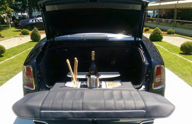 - A champagne fridge (2 bottle capacity) and glass case in the trunk that can be enjoyed with a table like opening leather padded tailgate.